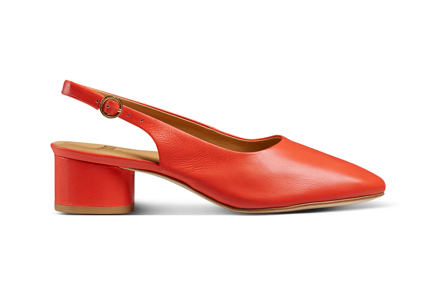 Cue the LORA. This ballet-inspired slingback turns up the heat with a subtle heel, rounded toe, and sleek back strap, all wrapped in supple leather. Designed with a leather-wrapped footbed with molded arch for comfort, and available in timeless neutrals or a bold tomato pop of color, it's the kind of classic-yet-chic shoe you'll reach for again and again.