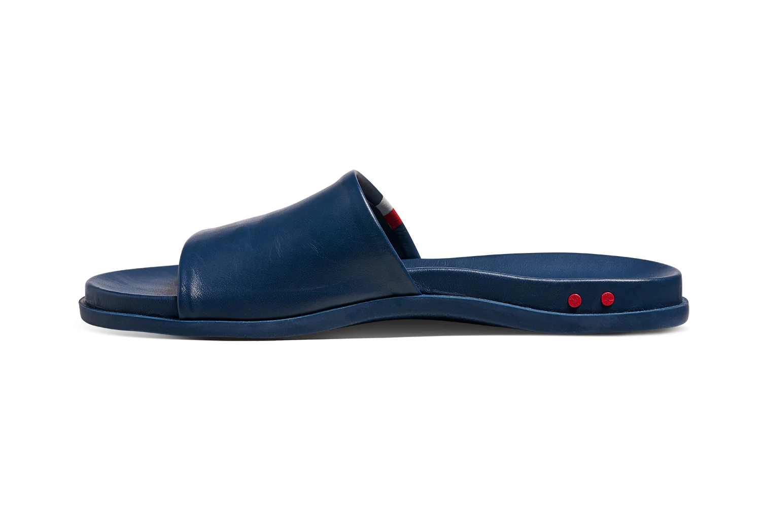 Shop the RAILIBIRD leather slide sandal in our dot, stripe, and surf colors.